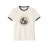 This vintage-inspired ringer tee brings a relaxed, collegiate energy to everyday wear. The soft, lightweight cotton drapes easily and breathes well, while the contrasting ribbed collar and sleeve cuffs add a nod to retro sportswear. A centered crest-style graphic gives the shirt a lived-in, nostalgic character — like a found jersey from a summer on campus. Wear it with rolled denim, layered under a denim jacket, or on its own when you want something simple with personality. It ages nicely with each wash and keeps its shape thanks to side seams and quality ring-spun cotton.